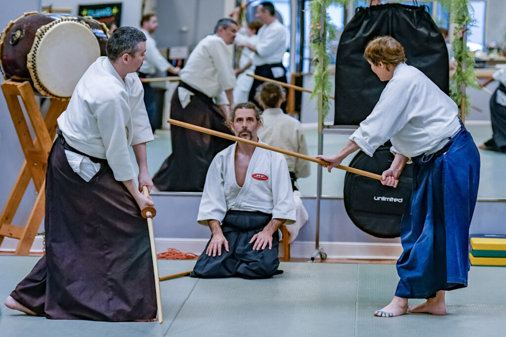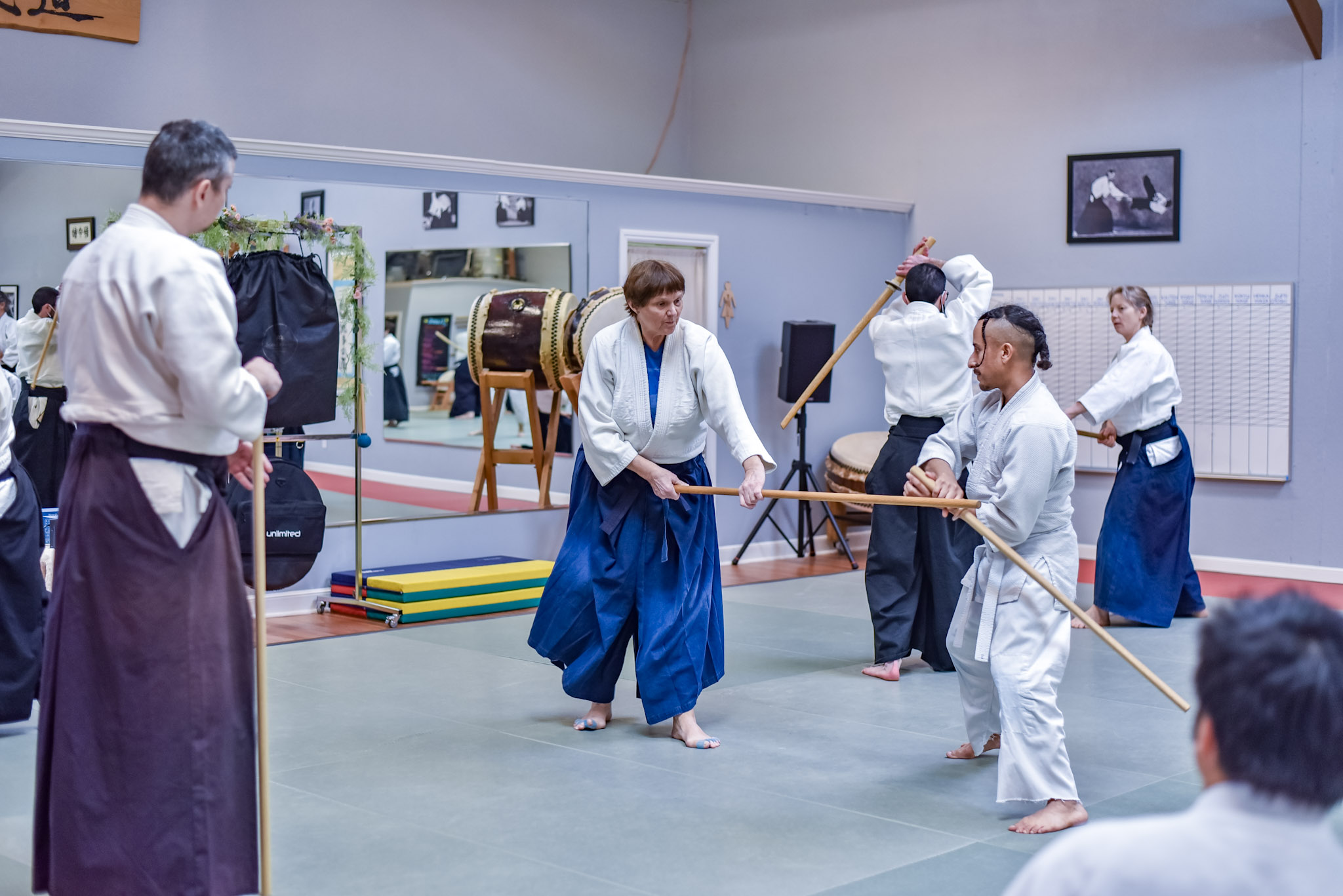 I am certain that subtler points of Diane Sensei’s lesson flew over my head. At times I had to revert to offering the minimum, which is an attempt to mimic what I think I am seeing. Luckily this did not faze our teachers, who we rely after the fact to distill Deskin Sensei’s message into a form that we, the students, can follow and develop. It is a big homework to take away, but do not fret since there’s a lifetime of practice ahead of us. It’s been several weeks since the seminar was completed, and we’re still riffing on its main message in our regular practice, both in weapons and body arts. That makes it a success in my book. And I wish for you that the thought of a lifetime of small Aikido steps fills you with joy.